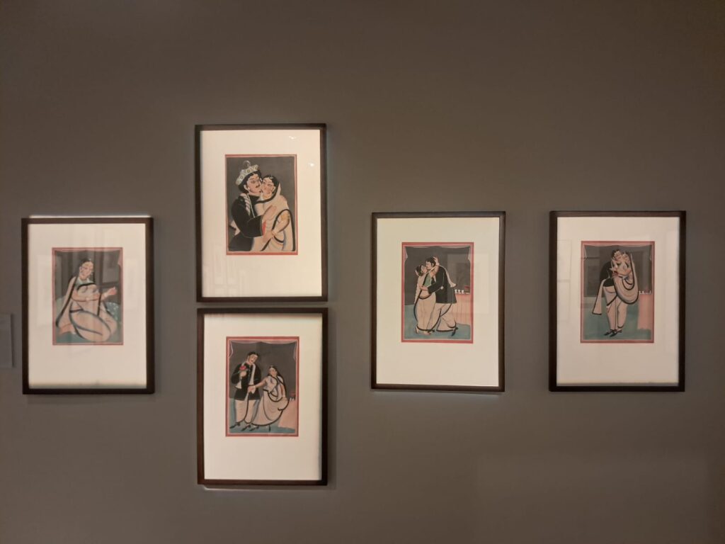 The ode to the city rightly begins with devotional oil paintings depicting icons of Goddess Kali, episodes of Krishna Leela, and icons of Goddess Durga, as remnants of the tantric, Shakti, and Vaishnav traditions that had gripped different parts of medieval Bengal. The series of devotional oil paintings then gives way to Kalighat paintings, which, like modern souvenirs, were bought by the earliest Jesuit Priests as symbols of an unknown faith.